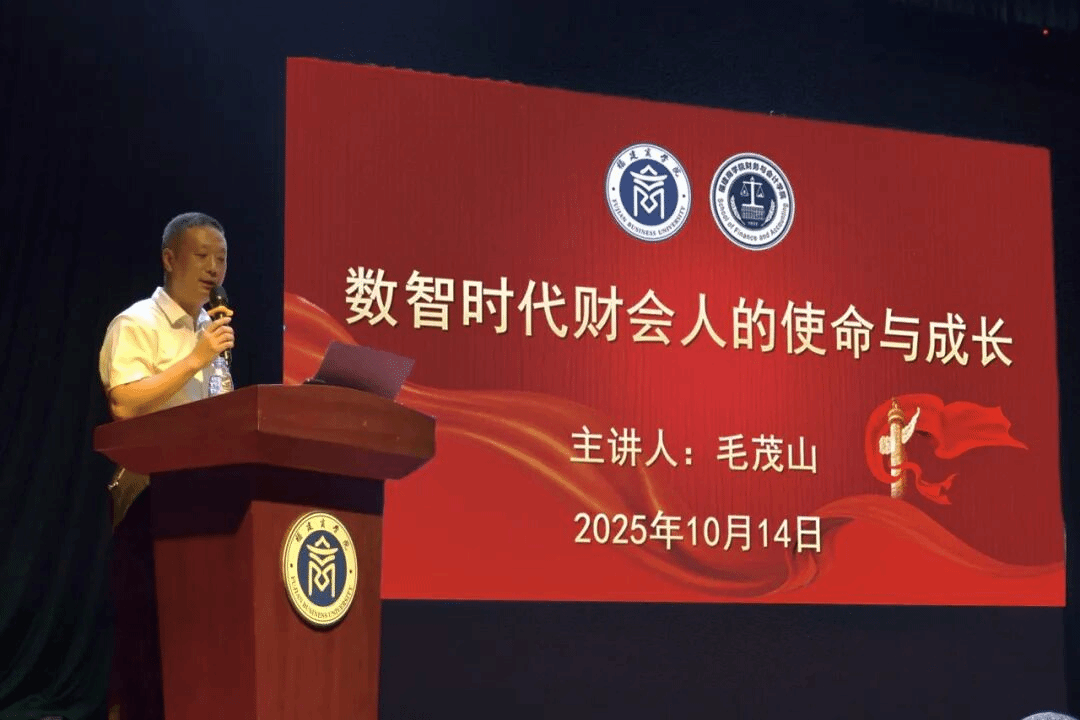 学院党委书记毛茂山以《数智时代财会人的使命与成长》为题讲授思政第一课。他通过案例分析指出,数智技术正重塑财会行业生态,强调青年需以“用数据守护公平、用算法传递温度、用专业服务国家”为使命,从价值观重塑、能力升级等维度探索成长路径。他号召新生牢记习近平总书记嘱托,将个人理想融入强国建设,在服务中国式现代化中彰显青春担当。