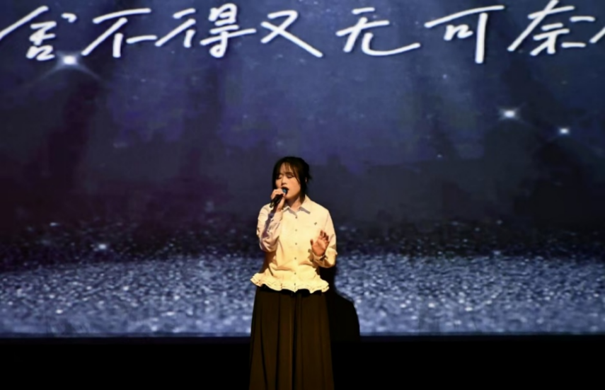 暖场环节,院舞蹈队以一支《iykyk》迅速带动气氛。随后,12名晋级选手分两轮竞演。首轮中,张婉欣《永不失联的爱》、朱芮瑀《大鱼》等歌曲依次亮相,选手以细腻的演绎赢得掌声。第二轮强强对抗中,程慧贤融合戏曲元素的《新贵妃醉酒》与郑鸿斌压轴演唱的《爱爱爱》将气氛推向高潮。