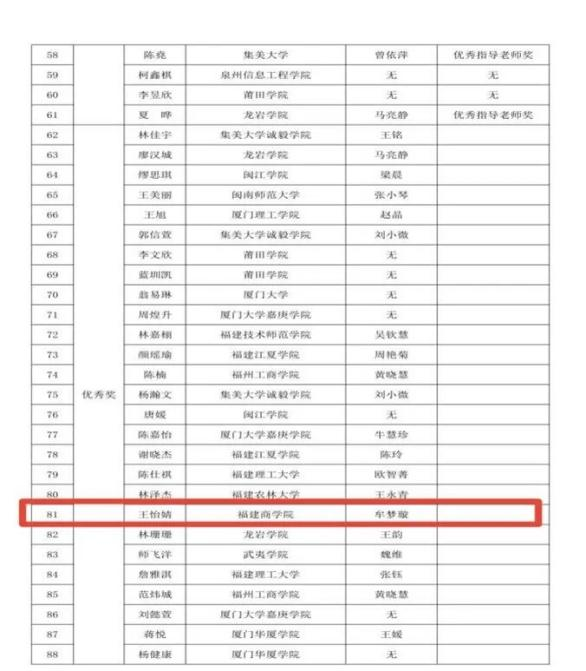 近日,由福建省高等学校图书馆情报工作委员会、福建省高校数字图书馆联盟(FULink)主办的第六届福建省高校“学问杯”影评大赛落下帷幕。我院李嘉勤同学(指导老师:詹巧霞)荣获本科院校组三等奖,王怡婧同学(指导老师:牟梦璇)荣获本科院校组优秀奖。