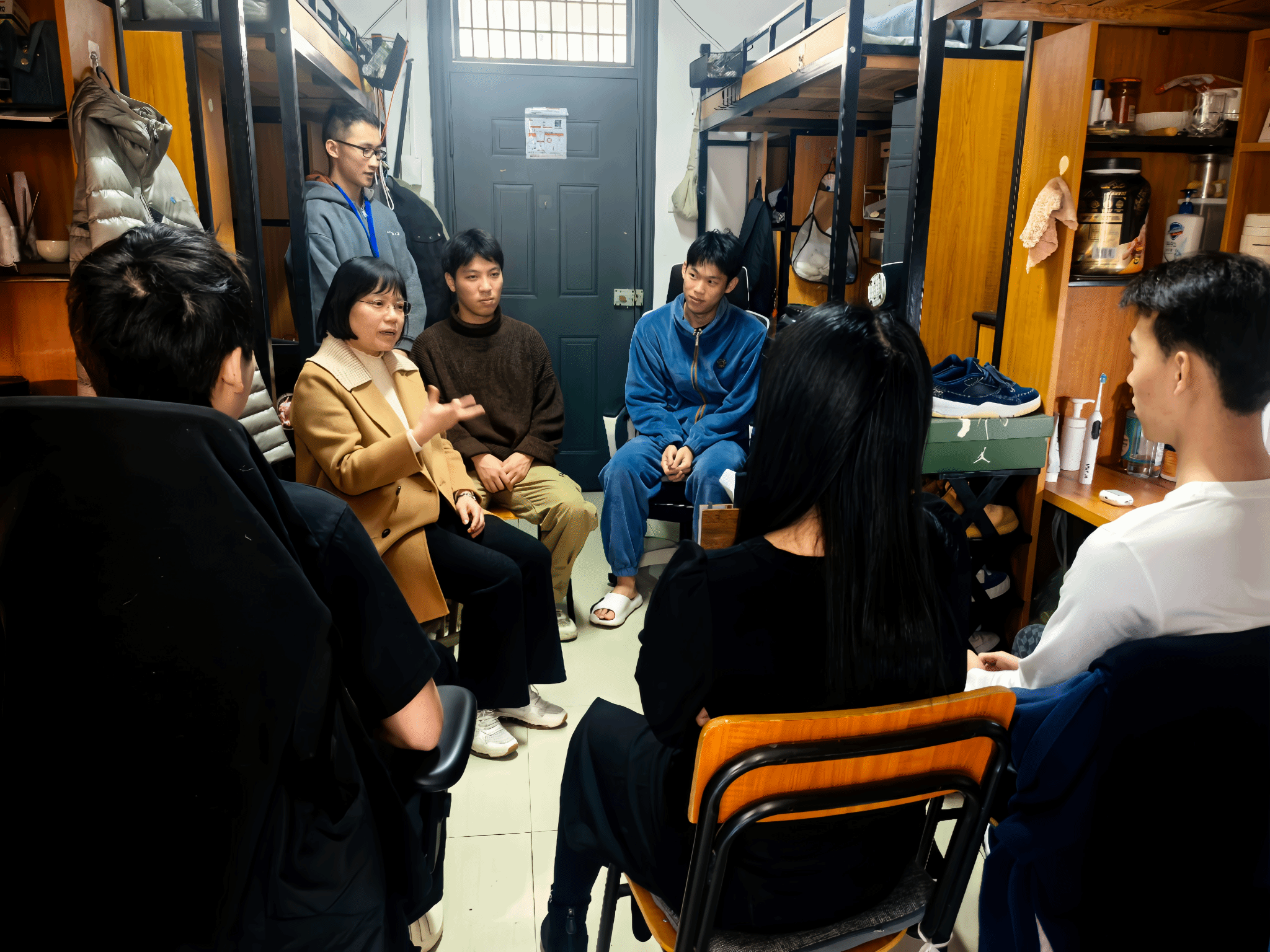 为深入了解学生返校动态,推进“三全育人”工作走深走实,学院领导班子带领全体辅导员深入“一站式”学生社区进行走访慰问。步入2025级转专业学生宿舍,毛茂山老师重点询问课程衔接情况与新环境适应感受,帮助他们尽快融入新集体;在与2024级少数民族学生交流过程中,王艳老师详细了解他们的假期返乡情况、民俗活动及在校生活需求,传递学院的关心与支持;谈及学业事宜,蔡秋玉老师认真听取2023级学生在学习过程中遇到的困惑,结合专业特点提出建议,鼓励他们调整心态、合理规划、积极面对新学期的挑战。